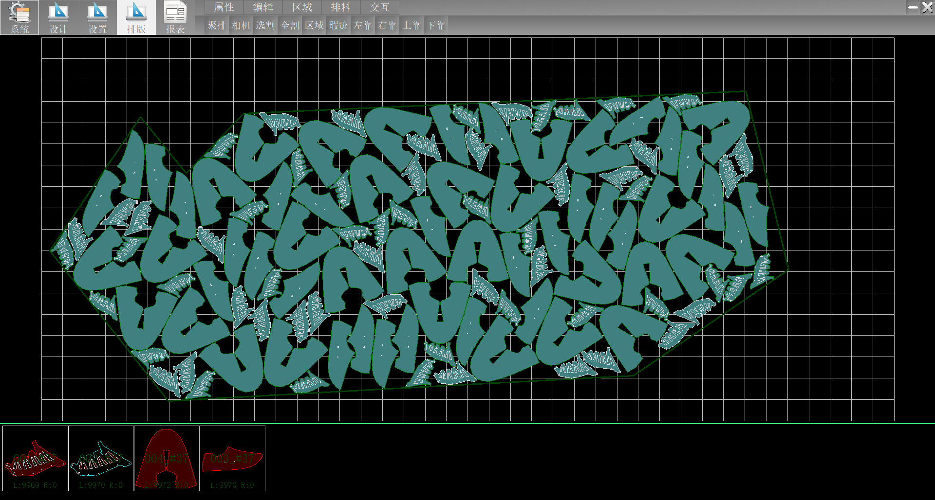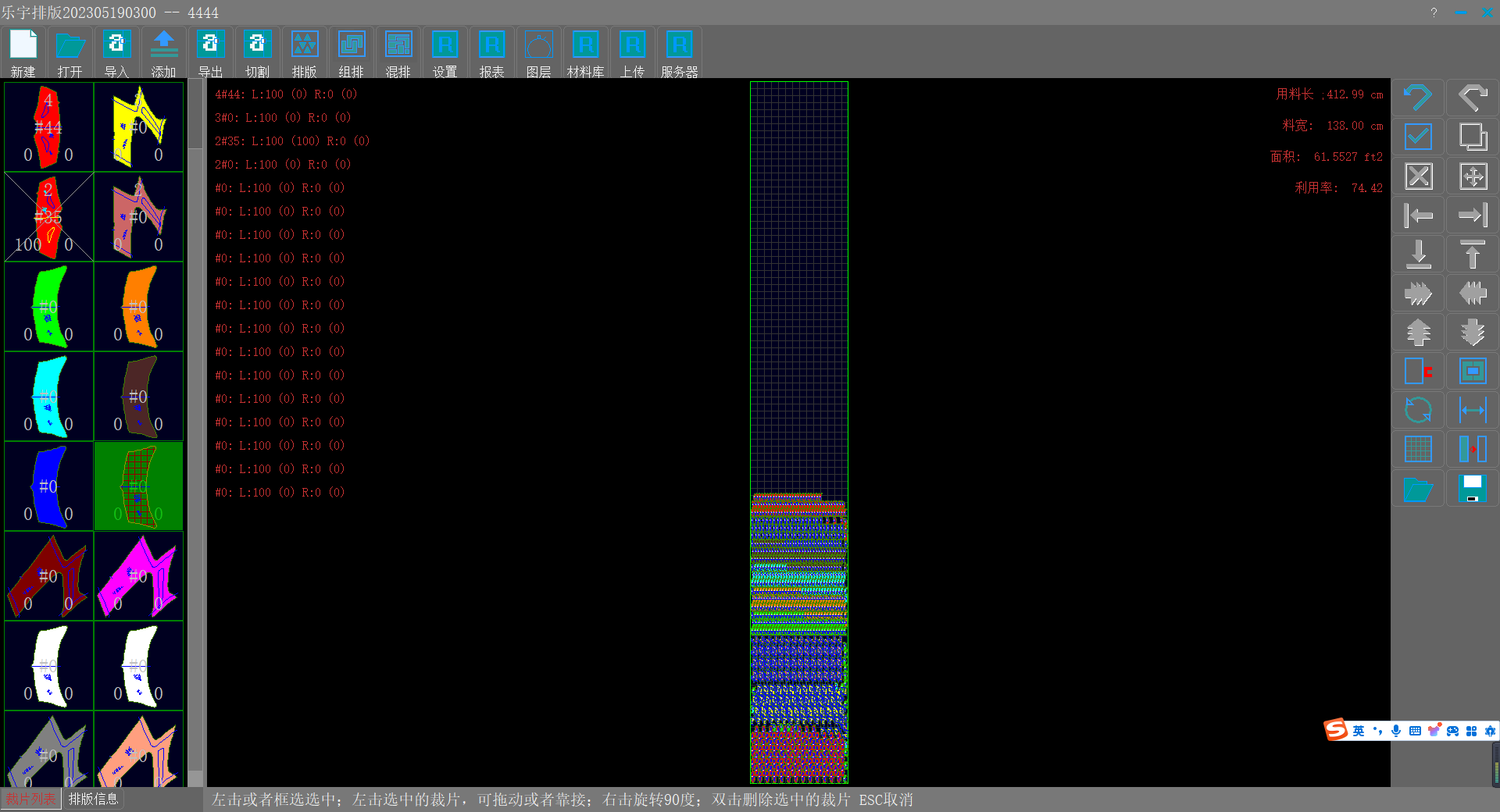 利用率高,速度快,可根据不同行业提供不同排法,可分区域分瑕疵等级任意角度自动排版。智能识别裁片,智能添加裁片牙位和剪口。